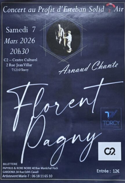 Concert au profit de l’association Esteban sold’air : Arnaud chante Pagny. Billetterie : Papyrus & Robe Noire (40 rue Maréchal Foch, Le Creusot) ou Gardénia (34 rue Edith Cavell, Le Creusot).