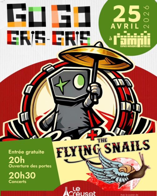 Soirée Concert – Groove & Rock en Saône-et-Loire. Prépare-toi à une soirée explosive où les styles se croisent et les frontières musicales disparaissent ! Go Go Gris-Gris : quand l’âme de La Nouvelle-Orléans débarque en Saône-et-Loire, ça donne un concentré de groove incandescent. The Flying Snails : place maintenant à un voyage sonore libre et sans œillères. Les Flying Snails brassent jazz, funk, blues et rock vintage pour créer un univers bien à eux, tantôt planant, tantôt percutant.