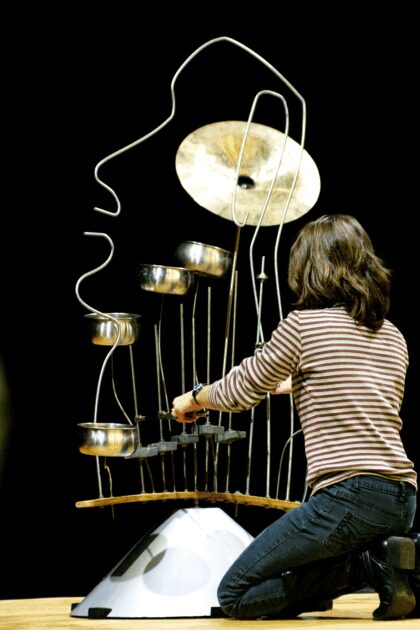 Exposition intercommunale avec la participation des villes de Saint-Vallier, Sanvignes-les-Mines, Blanzy. Sculptures d’ardoise et de bronze à tiges de métal frottées ou pincées, structures de bois et de métal percutées par des baguettes, métainstruments joués à distance par captation de mouvement, les sculptures ont besoin de la main du visiteur pour devenir paysage sonore; à la fois sculptures et instruments de musique, elles permettent à chacun de jouer avec les sons.