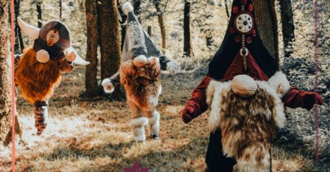 Déambulation de gnomes lumineux dans les jardins de la villa Perrusson
